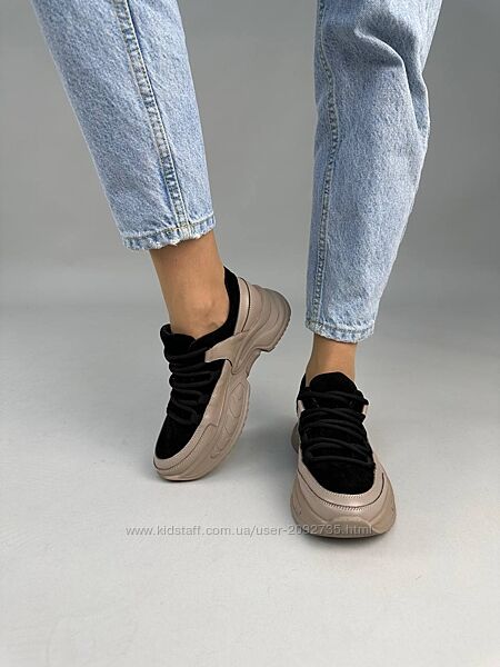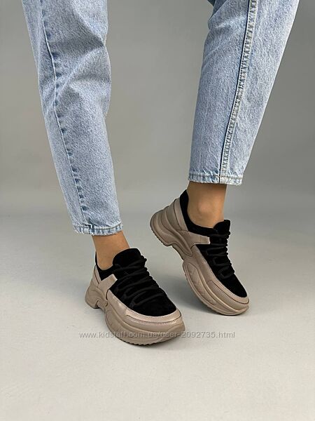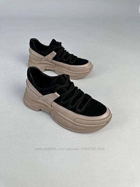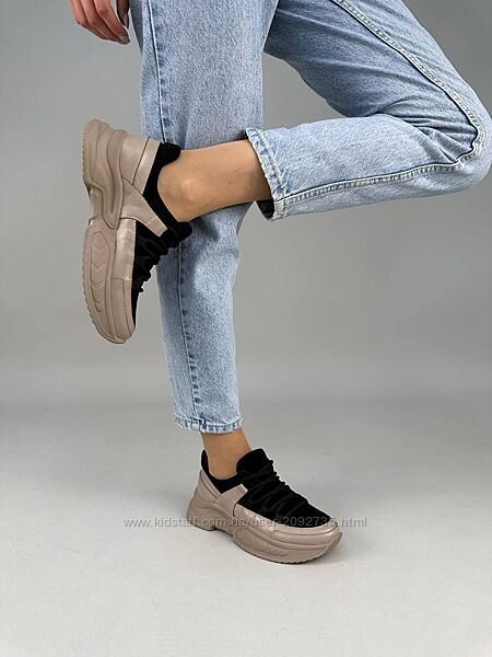 Подробное описание: Кросівки жіночі шкіряні бежеві із вставками чорної замші Артикул 9404
