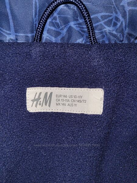 Продам куртку-вітровку H&M, б/в, для хлопчика, розмір 146. Капюшон відстібається, підкладка - тонкий фліс, по низу куртки проходить куліска - можна регулювати. Довжина по спинці 66 см, ширина 48 см, плече + рукав 65 см. Стан відмінний, тільки невеликі потертості на гумках рукавів з внутрішнього боку - видно на фото. Куртка великомірна, вистачить на декілька сезонів.