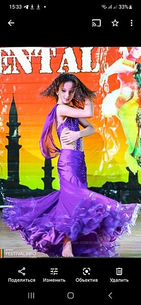 Восточный костюм в отличном состоянии, на рост до 150 см, возраст 9-11 лет. Красивый фиолетовый цвет, пышная юбка.Купальник-шорты с крыльями сзади, юбка, браслет на руку и два крыла на браслете. Замеры и видео по желанию.