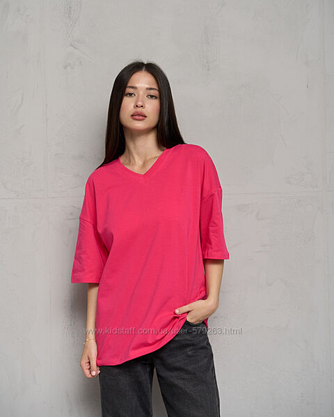 Подробное описание: Футболка жіноча однотонна оверсайз бавовна -