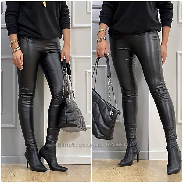 Легінси з еко-шкіри, в чорному кольорі, демісезонні та утепленні на флісі.