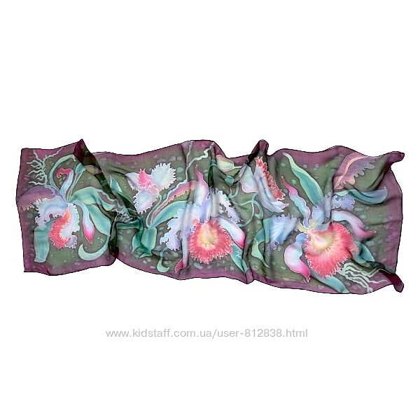 Подробное описание: Ручний розпис шовковий шарф Білі Орхідеї, натуральний шифон.