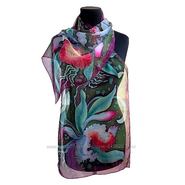 Існує понад 30 000 видів орхідей. Завжди можна вибрати найунікальнішу орхідею, як подарунок своїм близьким, адже ця квітка є джерелом позитивних емоцій і уособлює внутрішню гармонію, спокій, елегантність і розкіш.Але недовговічне життя квітки, а намальована на повітряному, напівпрозорому натуральному шифоні, - вона тішитиме вас довгі роки і навіть десятиліття!