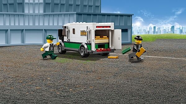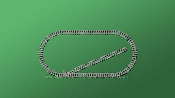 поездов с 16 изогнутыми рельсами, 16 прямыми рельсами и стрелочный перевод с рычагом, грузовик для перевозки денег с открывающимися дверями и рабочий вилочный погрузчик с открывающимся каркасом.