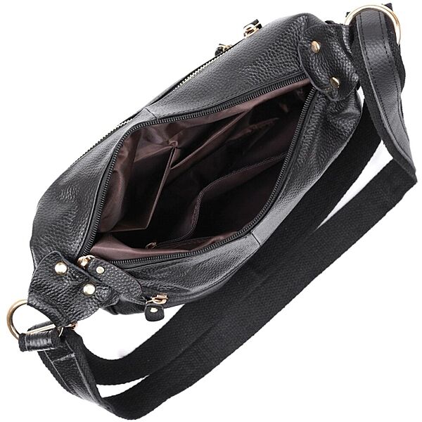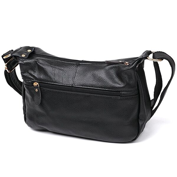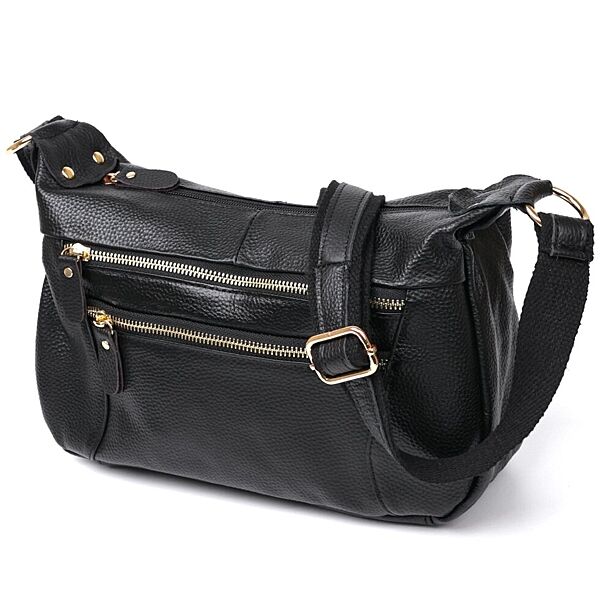 Стильная, удобная женская сумка кожаная с зернистой фактурой в черном цвете.Вместительного отделение на молнии, карманы для телефона и прочих мелких вещей. На внешней стороне дополнительные карманы.Материал: натуральная кожа;
