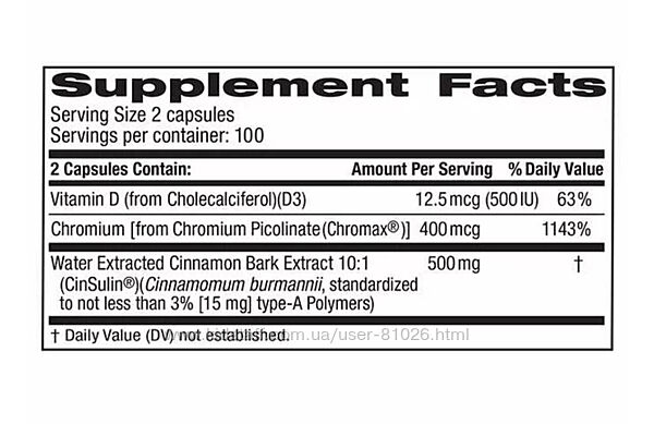 Крім того, в екстракті CinSulin корисні компоненти кориці містяться в концентрованій формі, у цьому зв´язку, лише дві капсули CinSulin рівні за дією десяти капсул порошку кориці.