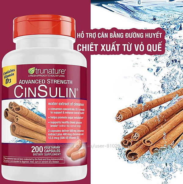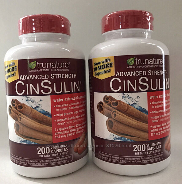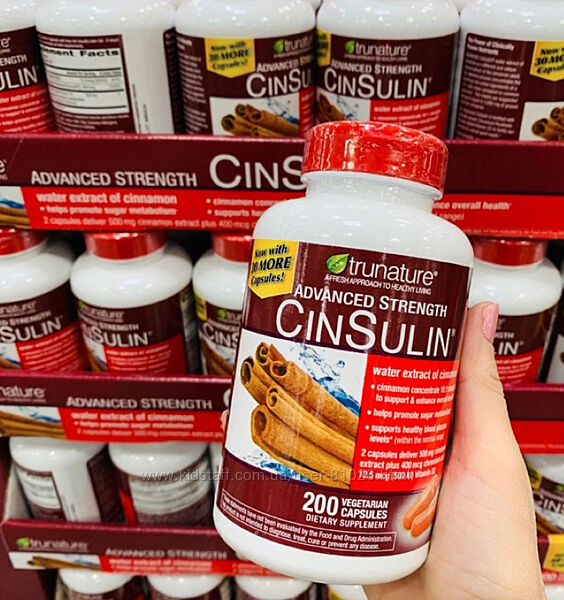Trunature CinSulin 200 капсул екстракт кориці 500 мг ДЛЯ зниження рівня цукруCinSulin — запатентований водний екстракт кориці.Посилена формула CinSulin trunature 500 мг, 200 вегетаріанських капсул