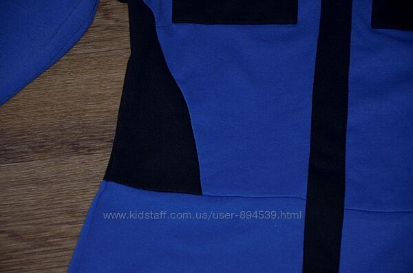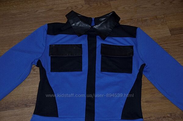 Стильное синее платье с черными деталями из эко-кожи от украинского производителя CARDO.Состав: 50% вискоза, 40% полиэстер, 10% шерсть
