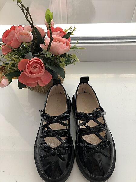 Детские лакированные туфли Размер 30 Стелька не вынимается , по замеру 17,5 см . На фото бумажная полоска 17,8 см Качественная экокожа. Мягкие Обуты один раз!
