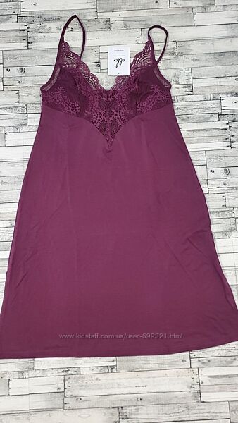 Нічна сорочка середньої довжини з V-подібним вирізом на тонких бретелях виготовлена з модалу. Виріб має відрізний ліф прикрашений мереживом та розрізи з боків. Тканина гладка та приємна для тіла.p.S продана