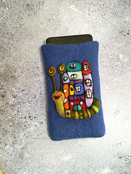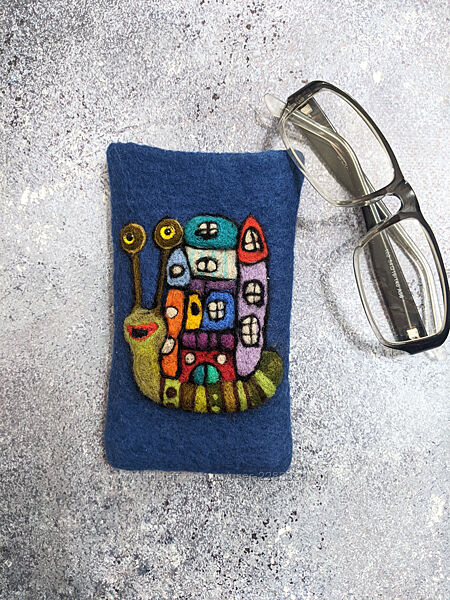 Чохол Равлик з будиночками, для мобільного, для окулярів - ручна робота