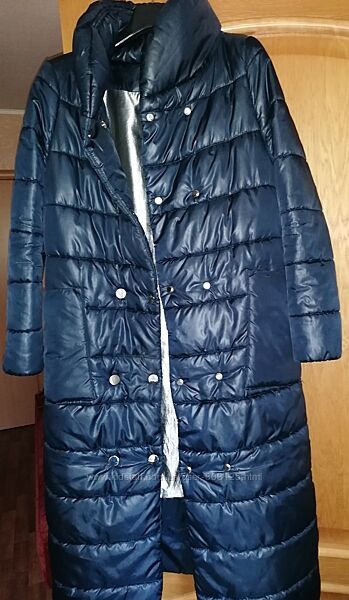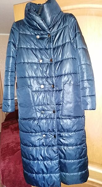 Продам пальто женское тёмносинего цвета ТМ Week, производство Украина. Застежка на 2 ряда кнопок, высокий воротник, 2 накладных кармана. Утеплитель искусственный, отлично стирается в машине, не сбивается , сезон зима. Размер 34, замеры по верху изделия :Ширина под рукавами 51 см