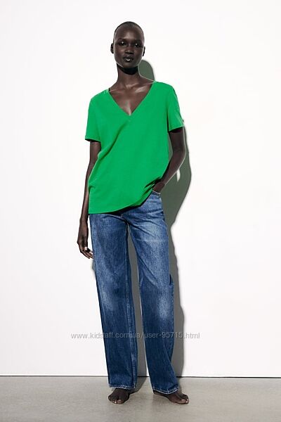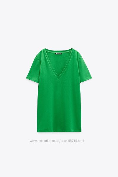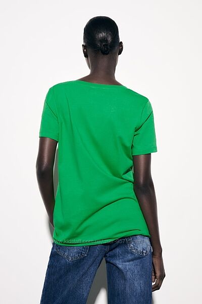 Подробное описание: Базовая зеленая футболка из хлопка с V -образным вырезом Zara - S, M, L, XL