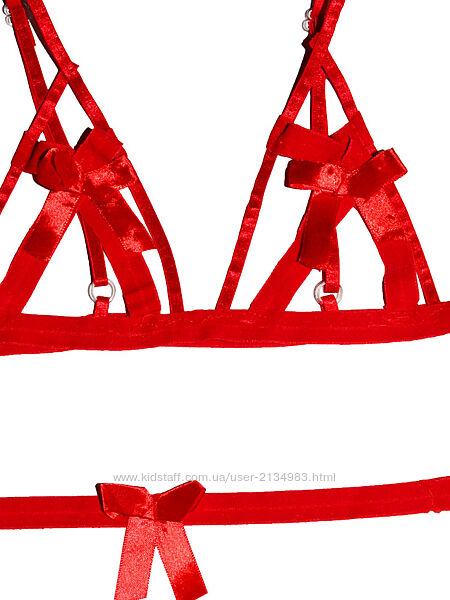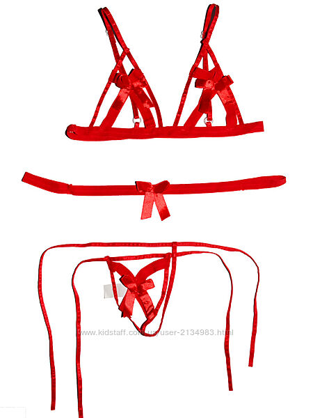 Эротический игровой костюм "Пленница" (костюм для ролевых игр): бюстгальтер, трусы, тканевые наручники.Бюстгальтер с открытыми чашечками с пересекающимися атласными лентами и
