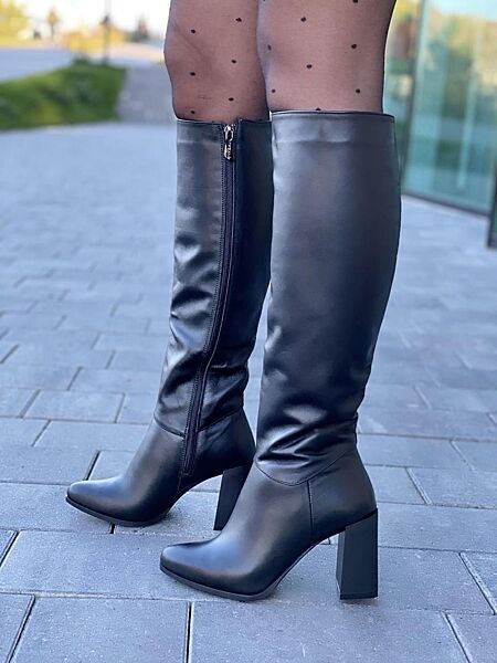 Производство Украины. Материал верха : кожа натуральная Внутри: турецкая байка Сезон: демисезонные Высота от пятки :41см. Обхват в голени :39-41см. Каблук:9см. Стелька: 36р.-23.5см. 37р.-24см. 38р.-25см. 39р.-25.5см.Предложения от магазина