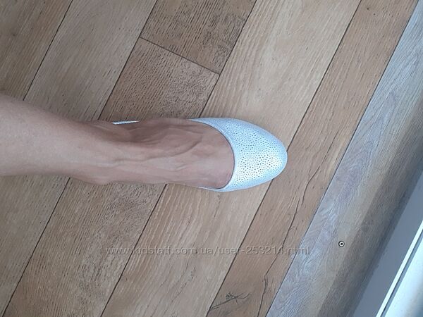р.37-38 Балетки белые кожа туфли перфорация перламутр