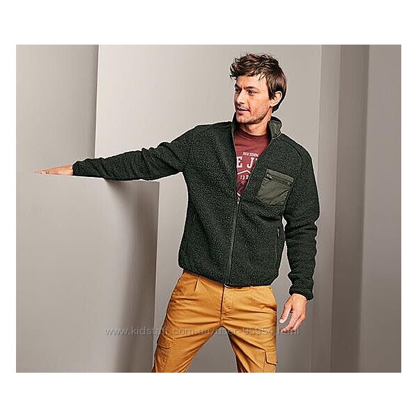 Опис виробника: Тепла чоловіча куртка зі структурою тедді-хутра - ідеально підходить для прохолодних днів у перехідний період. Модель має кишені на блискавці і зручно сидить на фігурі завдяки еластичному подолу та манжетам. Колір: темний малахіт Матеріал: фліс тедді /100% поліестер.