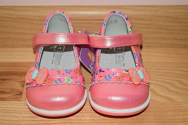 Туфлі на дівчинку виробника Tom mЗовні екошкіра, твердий задник, шкіряна устілка із супінатором. Застібка липучка.