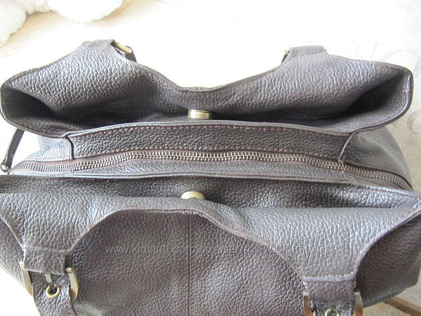 Жіноча шкіряна сумочка Collection Debenhams в гарному стані. Темно-коричнева. Шкіра мясиста, цупка, гарної якості. Підкладка ціла, чиста. Тріщин, зачіпок немає. Є малесенькі потертості на вуголках (на фото показала) Ручки потовщенні, без потертостей. Сумочка має три основні відділення (одне на змійці, два на магнітах) та одне додаткове. Вся фурнітура працює гарно. Заміри по дну: 33,5х11 висота - 19см Висота ручок 22смДругие объявления продавца