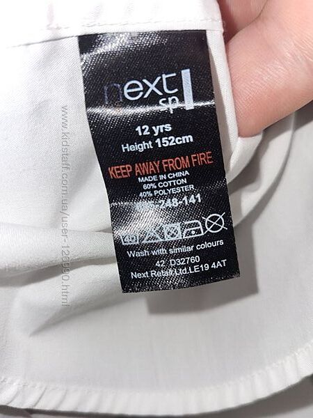Біла приталена сорочка Next хлопчику на 12 років зріст по етикетці 152 см. Склад: 60 % бавовни, 40 % поліестеру. В гарному стані. Ціна 290 грн.Довжина 64 см, довжина рукава від плеча 54 см, НОГ 45 см.