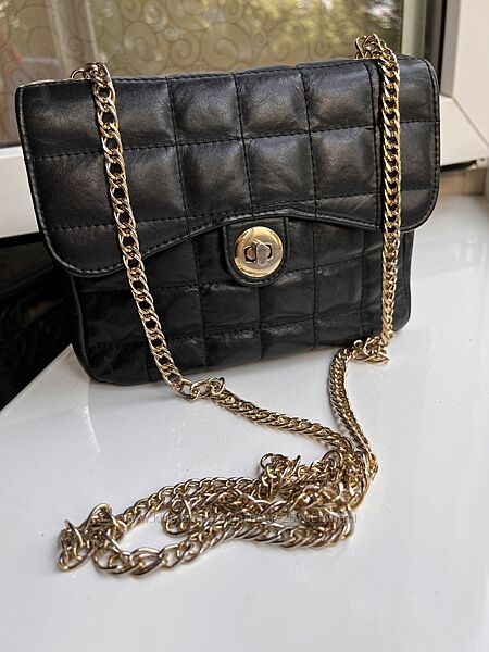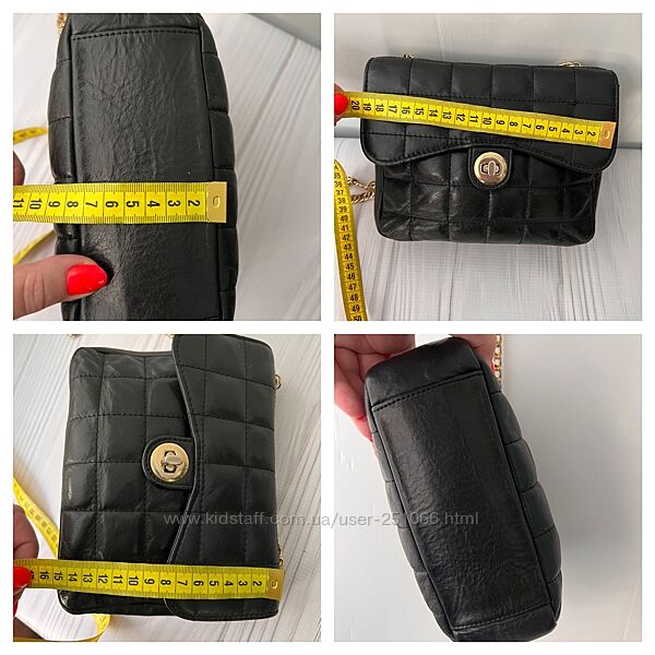 Маленькая сумочка всегда должна быть среди аксессуаров леди, замеры показала на фото и фото бирки, длина цепочки -122смЦвет цепочки золото, застенка немного вытерлась и не такая золотая, но в носке это не заметно.