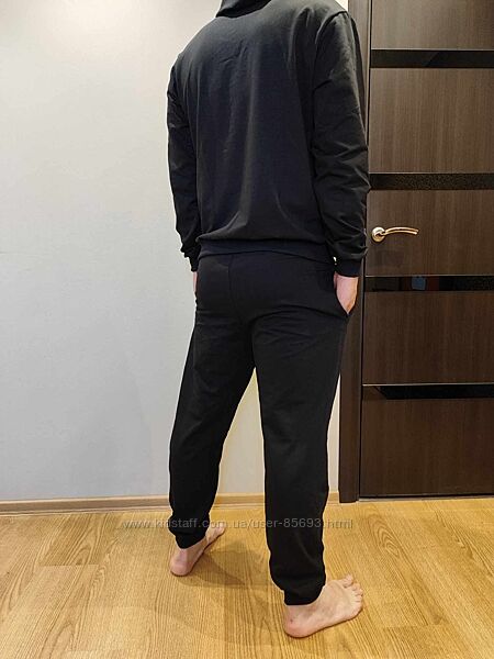 Кофта худи, капюшон, рукава на манжете , штаны внизу на манжетах , два кармана , пояс резинка + шнурок.
