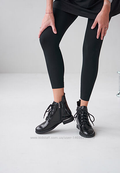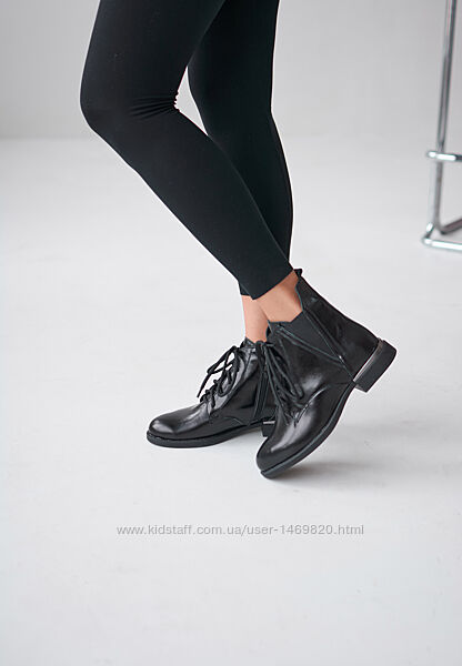 Подробное описание: Ботинки женские лаковые лакированые на шнурках молнии стрейч низкий каблук