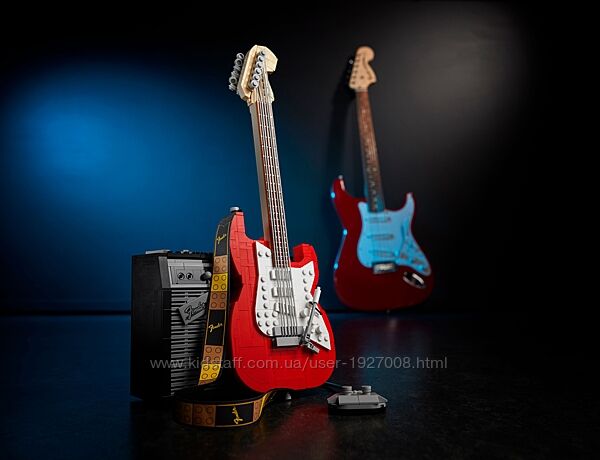 В набор из 1079 деталей входит буклет об истории гитары Fender® Stratocaster®, дизайнере-любителе и дизайнерах LEGO®, а также пошаговое руководство для увлекательной сборки.
