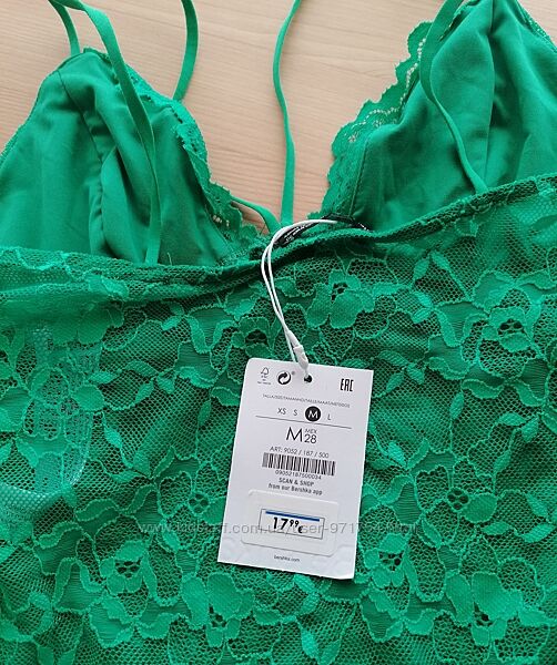 Подробное описание: Зеленый кружевной боди от bershka размер М