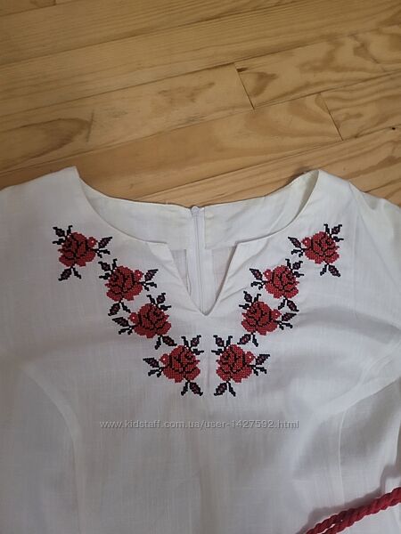 Продам вишиванку в ідеальному стані. Ріст:164-96-104. EU-42,USA-10/Слобожанка. Склад: 96%-лен,4%-поліуретан/еластан. Довжина-95 см.,плече-11 см., рукав-50 см., шир. від пройми до пройми-48 см., полуобх.талі-45 см, шир. знизу-55 см. Доставка: любим перевізником Всі питання пишіть в приват. Проплата на картку Приватбанк.