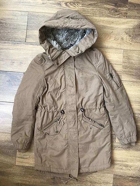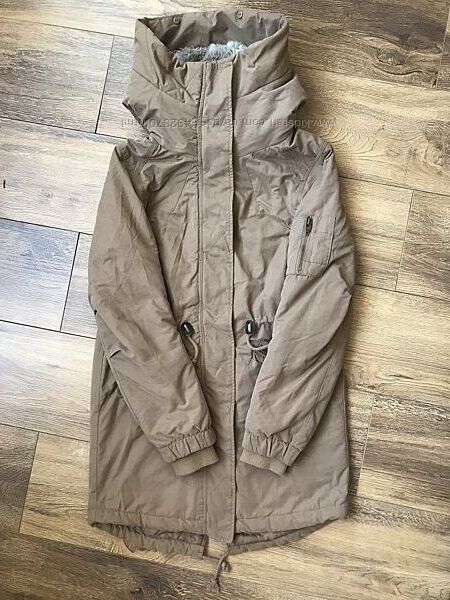 Парка кава з молоком, розм 32, приблизно на 10-12 років. Утеплювач стьобаний. Стан дуже гарний, без недоліків, лише катунці на манжетах.плечі - 40