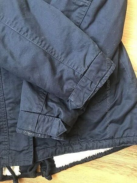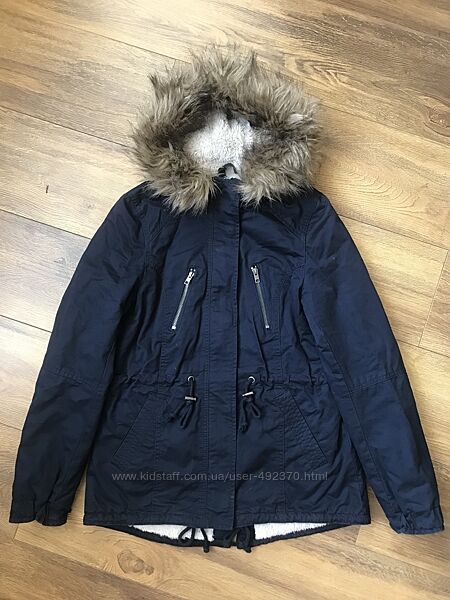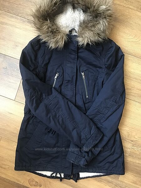 парка темно-синя, розмір 34. Має легке утеплення, хутро відстібається.