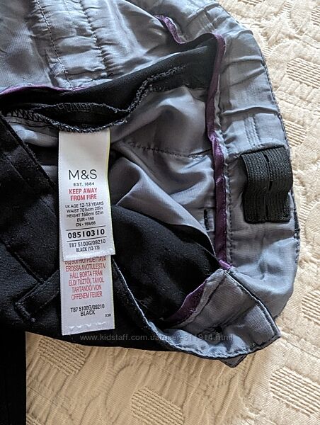 Брюки M&S, 12-13 лет, рост 158, есть резинка для утяжки, есть запас по длине. Длина по внешнему шву от края до края с учётом пояса 94 см, ПОТ 35 см.В хорошем состоянии. Отправлю почтой, могу встретиться у метро Арсенальная.