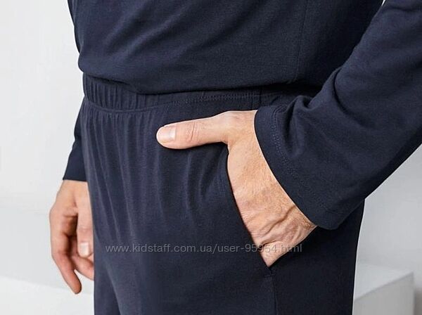 колір - темно-синій -Приємна тканина на дотик, м´яка і дихаюча -Штани з еластичним поясом і бічними кишенями -Надзвичайно м´які завдяки волокну TACTEL® -кофта з овальним вирізом 60% бавовна, 40% поліамід (TACTEL®)