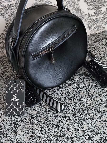 ✅✅✅Нова з біркою шкіряна сумка від виробника SOLANA! Дуже якісна 100% Натуральна шкіра+натуральний замш зі стразами! Сумочка маленька, але надзвичайно вмістка! Має два окремих відділення з карманами, фірмову підкладку і фурнітуру з логотипом бренда!Висота 19 см, довжина 19 см, ширина дна 9 см.