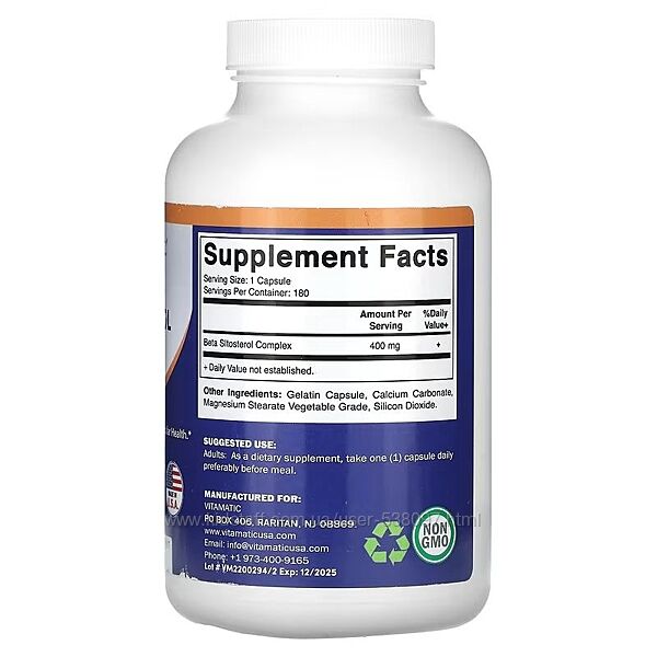 🌞 🍀 Vitamatic Бета-ситостерол 🌞 🍀400 мг, 180 капсул.
