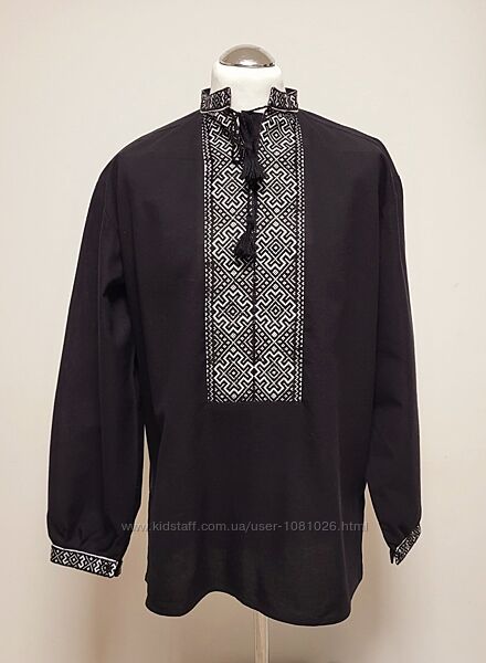 Чоловіча вишиванка ручної роботи з монохромною вишивкою на домотканому полотні "Низинка"Монохромність за останні роки набула трендових мотивів у різних сферах діяльності. Однобарвний стиль не оминув і вишиванкову культуру. Найбільш поширеною однотонністю у вишиванках є стиль "чорним по білому". А це тому що саме "Чорні вишивки" є прикладом багатогранності, неоднозначності та глибини СИМВОЛІКИ.З давніх часів в багатьох районах України старші люди, які були хранителями мудрості та знань поколінь, носили саме чорні вишиванки. Чорний колір у побуті також був поширений на Поділлі, де він активно використовувався у вишиванках. Цікаво, що в деяких районах (Сокальщина) навіть весільні вишиванки вишивалися саме чорним кольором. Вишивання білим та чорним кольором на білому полотні є одним із найдавніших на теренах України. Чорний колір у вишивці є кольором землі, урочистості, багатства.