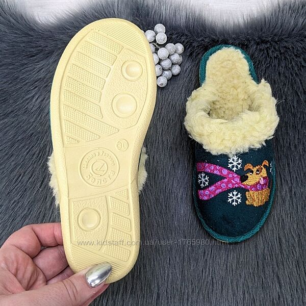 Тапочки детские Белста зеленые с овчиной и вышивкой 5120Детские тапочки Белста, стелька и опушка из овчинки. Очень теплые и мягкие. Подошва полиуретановая - не стирается, не ломается, не трескается, не проседает.. Домашние тапочки высокого премиум качества! С минимальным уходом прослужат не один год!