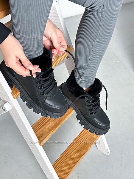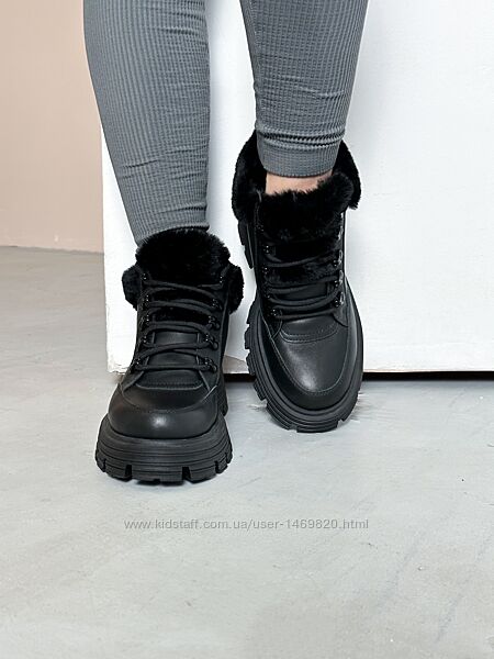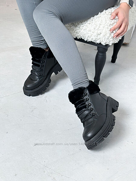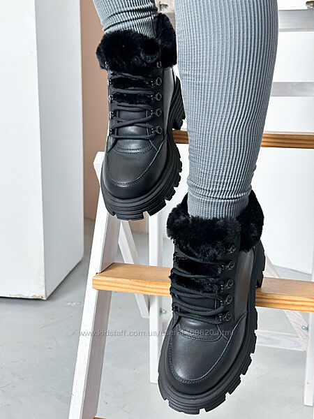 Подробное описание: Черевики ботинки зима жіночі з опушкою шкіра хутро чорні