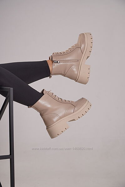Світлі бежеві стильні жіночі зимові черевики на товстій підошві.