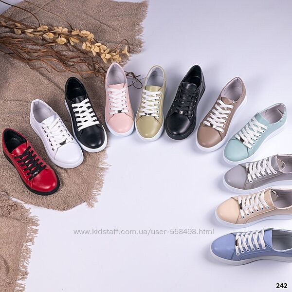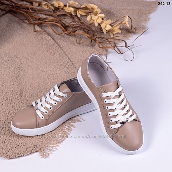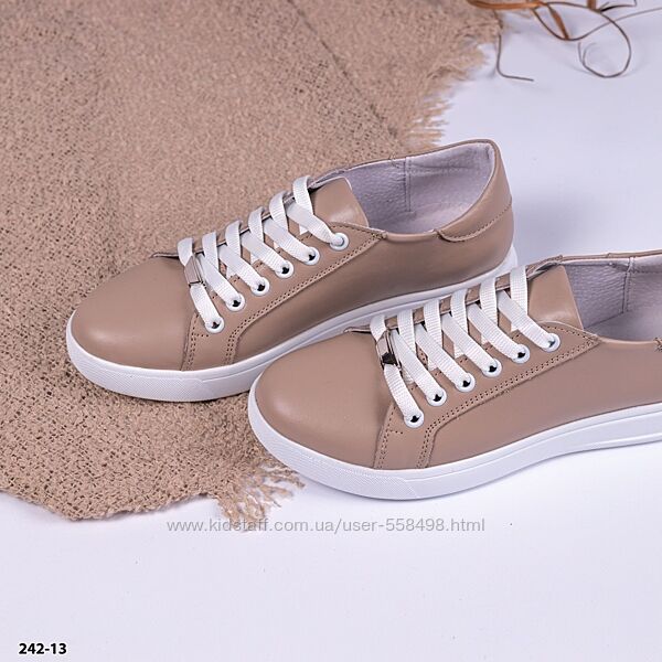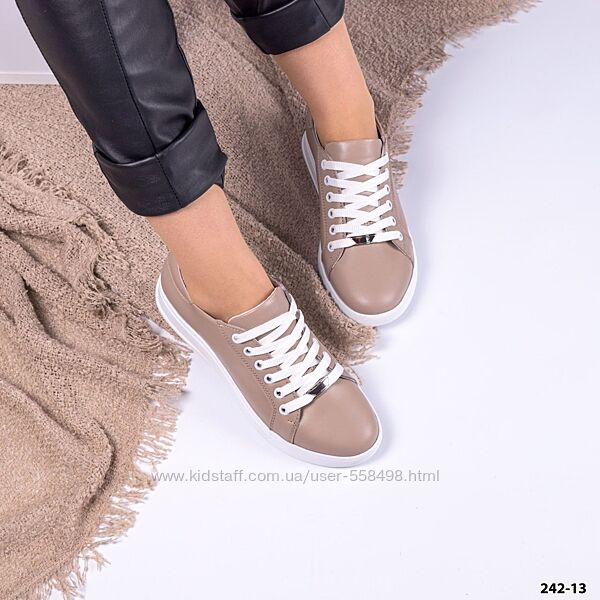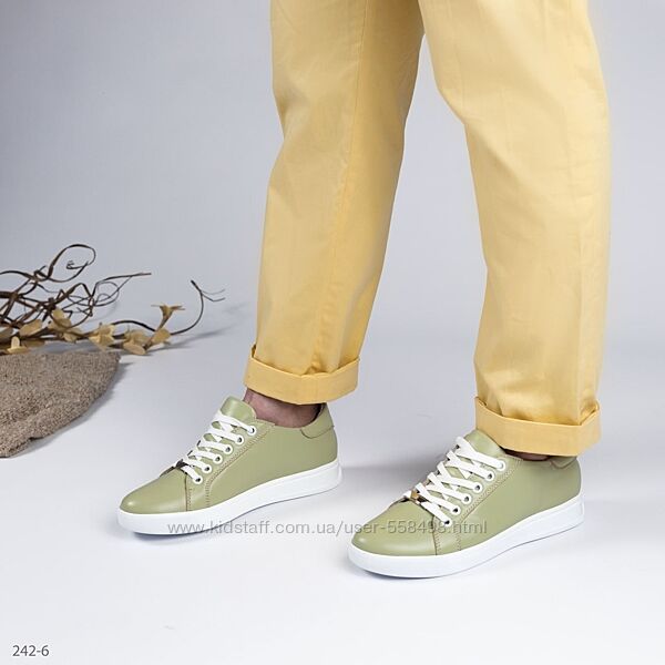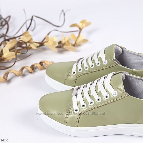 Подробное описание: Шкіряні жіночі кеди колір лате та оливковий