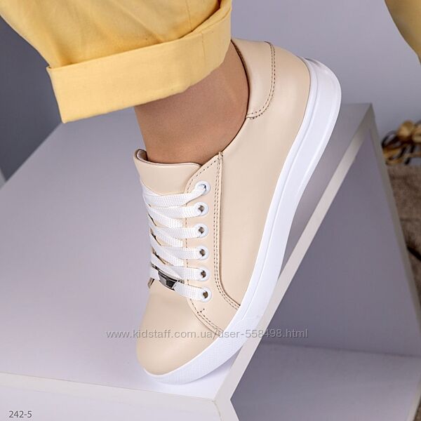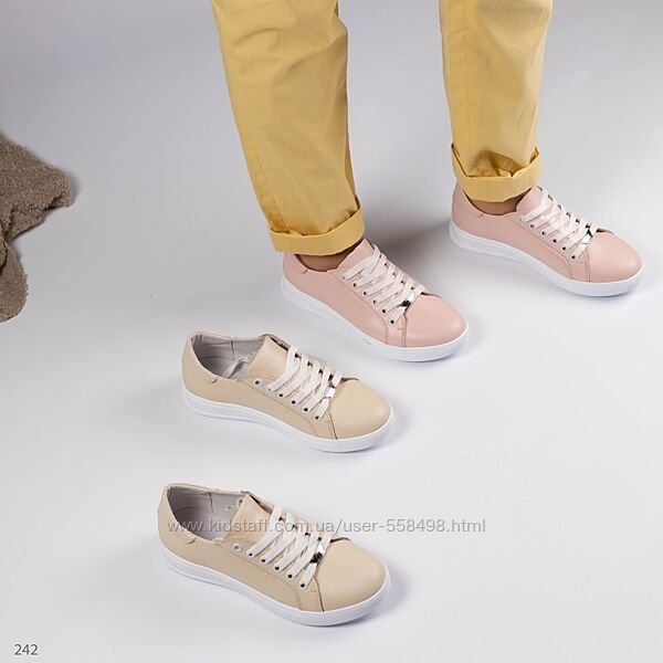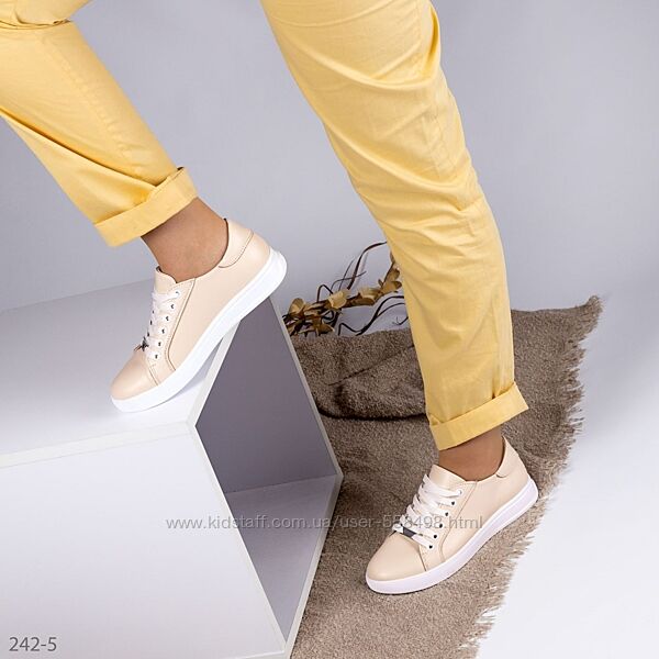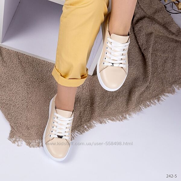 Подробное описание: Шкіряні жіночі кеди бежевого та лавандового кольору