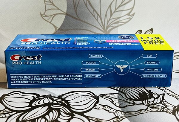 А так само її формула захищає та зміцнює слабку емаль зубів. Новітня розробка компанії Procter & Gamble для людей з підвищеною чутливістю зубів. Завдяки унікальній формулі із вмістом "нітрату калію" зубна паста Crest Pro-Health Sensitive має максимально дбайливий відбілюючий ефект і заспокоює нервові закінчення зубів. Клінічно доведено, що зубна паста Crest Pro-Health Sensitive при щоденному використанні значно знижує або повністю усуває больовий поріг, пов´язаний із підвищеною чутливістю зубів до гарячого/холодного, кислого/солодкого.