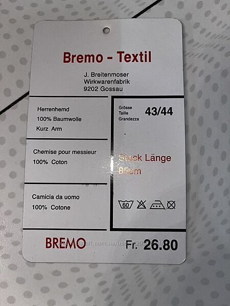Чоловіча сорочка фірми Bremo Швейцарія, розмір 43/44