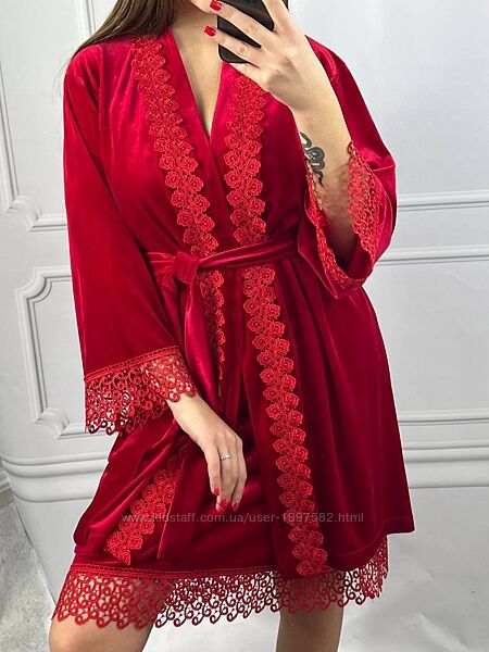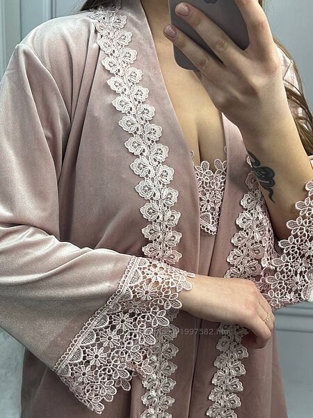 Набір-двійка з королівського оксамиту (бархату). У набір входить: сорочка і халат - кімоно.