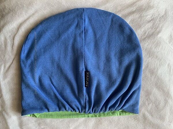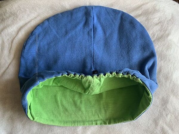Шапка трикотажна подвійна для хлопчика розмір 54 на 9-12 років. Стан добрий, нам була завелика ззаду по краю вставлена нитка-резинка (можна витягнути).Заміри: