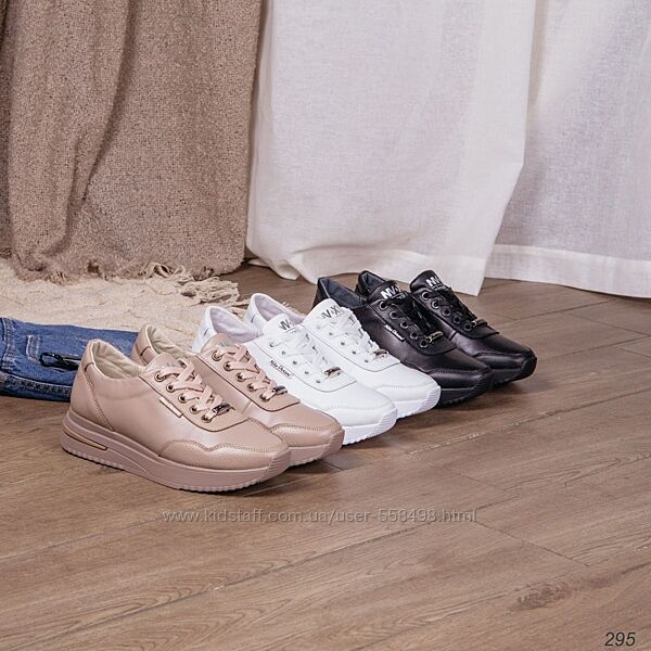 Подробное описание: Жіночі шкіряні кросівки чорні, білі та кольору капучіно