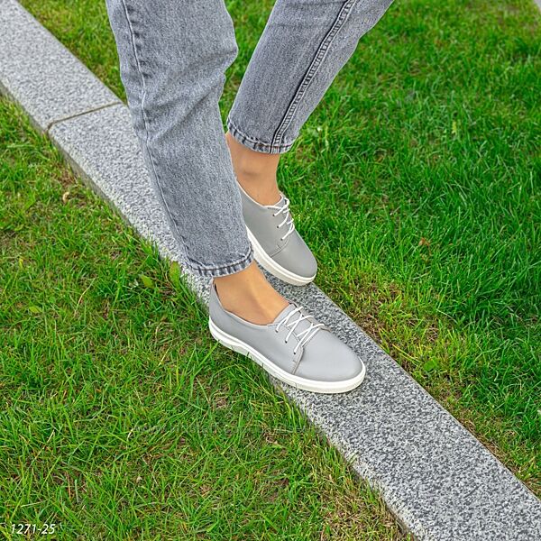 Подробное описание: Жіночі кеди сірого кольору на білій підошві