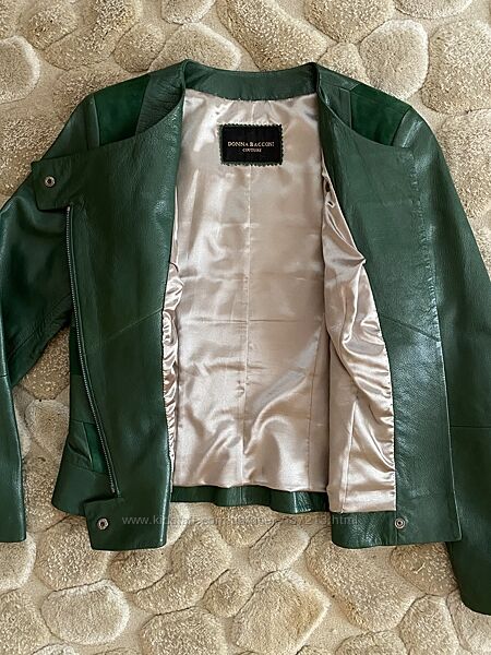 Женская кожаная куртка Donna Bacconi. Очень красивого изумрудного цвета. Оригинал. Производство Италия. Размер XS.Натуральная кожа премиум качества, очень мягкая. Логотипы и голограмма присутствуют. Состояние идеальное, покупалась в 2021 году, одевалась раз 5.