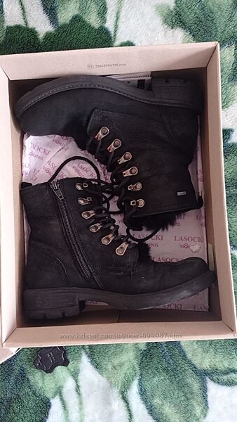 Демі чобітки для дівчинки. Застібаються на замочок та регулюються шнурком по товщині ніжки. Розмір 34. Всередині на флісі. Виготовлені з натуральної шкіри (нубук). Оздоблені натуральним хутром на язичку. М´ягенькі та зручні.Другие объявления продавца